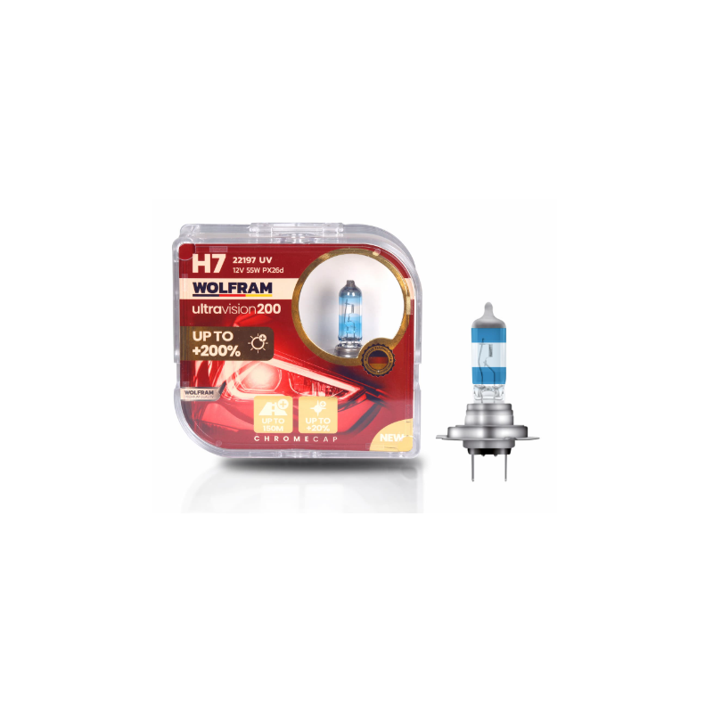 Wolfram Ultra Vision otomobil far ampulleri, gece sürüşlerinde gündüz gibi görmenizi sağlayan, %200 daha fazla ışık ve %20 daha beyaz ışık sunan özel bir ampul kategorisidir.